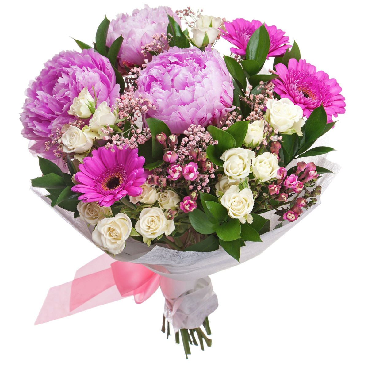 | Состав | Герберы, Гипсофила, Кустовые розы, Пионы, Розы |